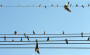 하동군 횡천면 남산리 상남마을 입구에 27일 이른 아침 수 천 마리 제비들이 부화한 새끼들을 데리고 전깃줄에서 떠오르는 햇살을 받고 있는 모습..