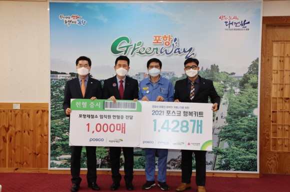 또한, 작년과 더불어 올해도 포항제철소 임직원 헌혈증 1,000장을 함께 전달하며 행사의 의미를 더했다.