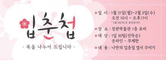 또한, 정관박물관은 입춘(2월 4일(금))을 맞아 입춘 엽서를 제공하는 <입춘첩-복을 나누어 드립니다> 행사도 진행한다.