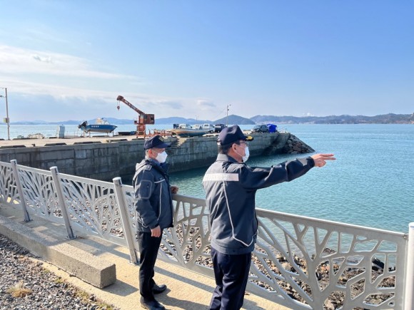 |  | | | ↑↑ ▲2022년 2월 8일 김석진 태안해양경찰서장(오른쪽)이 가로림만 해역 구도출장소, 벌말출장소를 방문하여 현장 점검을 하고 있다./ 출처=태안해양경찰서 | | ⓒ (주)영남도민일보 | | [영남도민일보] 영남도민일보 기자 = 김석진 태안해양경찰서장이 8일 가로림만 연안해역의 항·포구와 선박 안전관리 실태를 확인하고 구도항과 벌말항 등 취약지를 중심으로 주변 안전시설물을 살펴보는 등 치안현장 점검에 나섰다.