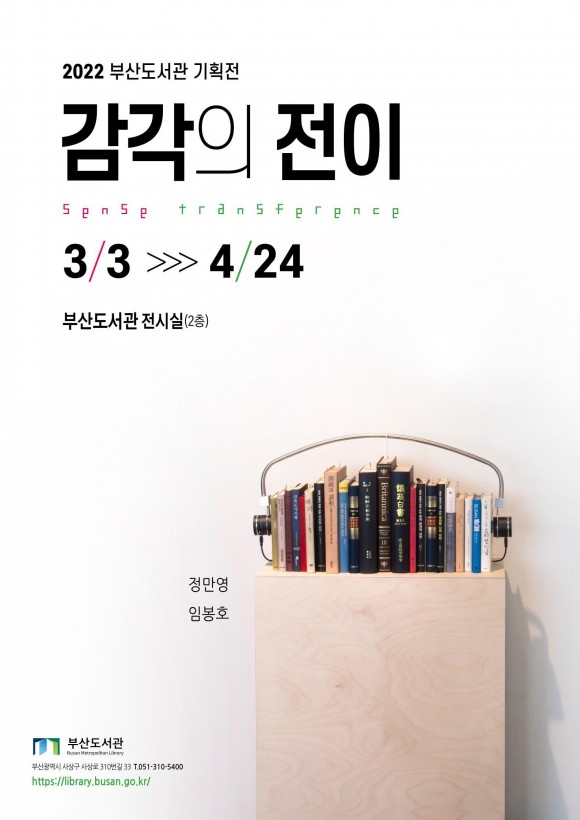 |  | | | ⓒ (주)영남도민일보 | | [영남도민일보] 영남도민일보 기자 = 부산시 부산도서관은 오는 4월 24일까지 부산도서관 2층 전시실에서 2022년 제1차 기획전시 「감각의 전이 sense transference」를 개최한다고 밝혔다.