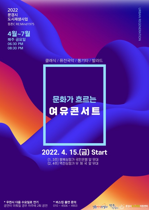 문경시도시재생지원센터는 향후 지역 예술가들의 참여율과 관객들의 호응도 등을 종합적으로 분석해 하반기 공연도 추진할 계획이다.