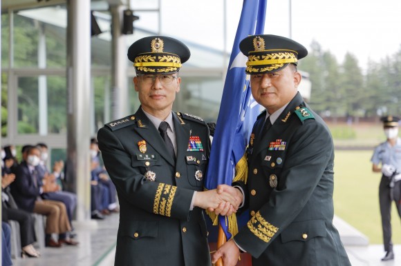 |  | | ↑↑ 박정환 육군참모총장이 방성대 신임 육군3사관학교장에게 부대기를
