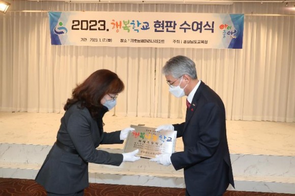 한편 경남교육청은 17일 통영마리나리조트에서 2023년 재지정 및 신규 지정 행복나눔학교와 행복학교 학교장에게 행복학교 현판을 수여했다.