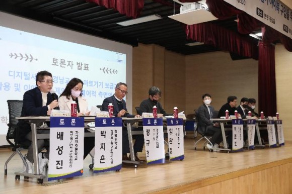 기조 발제를 맡은 임완철 경상국립대 교수는 “메타버스, 인공지능 등 꾸준히 새로워지고 있는 디지털 기술을 활용하여 새로운 교수학습활동을 준비해야 한다”라면서 스마트단말기 보급의 필요성을 강조했다. 또 “지역을 넘어 세계적인 수준에서 선한 영향력을 제공할 수 있는 빅데이터·인공지능(AI) 플랫폼 ‘아이톡톡’과 ‘아이북’에 대한 계획을 수립할 필요가 있다”라고 주장했다.