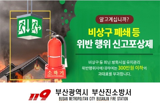 부산진소방서, 비상구 폐쇄 등 불법행위 대시민 신고제 안내