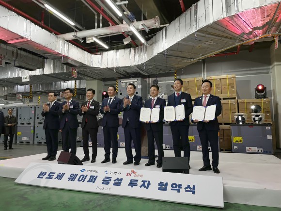 |  | | | ⓒ (주)영남도민일보 | | [영남도민일보] 김옥순 기자 = 구미시(시장 김장호)는 2023. 2. 1.(수) SK실트론 본사에서 윤석열 대통령, 이창양 산업통상자원부 장관, 한화진 환경부 장관, 경상북도 이철우 지사, SK그룹 최태원 회장, SK실트론 장용호 사장, 지역 국회의원 등이 참석한 가운데 SK실트론 300mm 웨이퍼 분야 투자양해각서(MOU)를 체결한 후 고순도 공업용수 실증플랜트 사업 현장을 답사하였다.