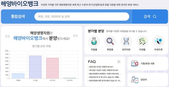 |  | | | ↑↑ 해양바이오뱅크(https://www.mbris.kr/biobank) | | ⓒ (주)영남도민일보 | | [영남도민일보] 영남도민일보 기자 = 국립해양생물자원관(관장 최완현)은 ‘국가생명연구자원 선진화사업’*의 일환으로 확보한 해양생명자원 1,370종의 유용 효능등급을 확인하고 해당 기업 등에서 제품개발에 활용할 수 있도록 해양바이오뱅크**를 통해 정보 공개 및 분양한다고 밝혔다.