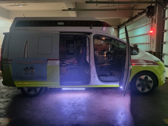도어라이트(door light)란 차량의 운전석, 조수석, 2열 슬라이딩 도어 하단부에 LED 조명을 설치한 것으로, 차량 하차 시 조명으로 충분한 시야를 확보할 수 있어 현장 소방대원 안전사고 예방에 효과적이다.