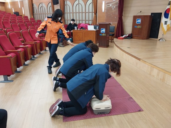 이날 교육의 주요 내용은 ▲화재 시 대피, 초동 대처 방법 ▲소화기 및 소화전 사용 방법 ▲소화기를 활용한 피해 저감 사례 공유 ▲심폐소생술, 응급처치법 등이며 실습 위주 교육을 진행했다.
