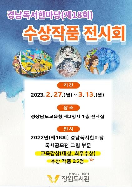 |  | | | ⓒ (주)영남도민일보 | | [영남도민일보] 영남도민일보 기자 = 경상남도교육청 창원도서관(관장 황현경)은 2월 27일부터 3월 13일까지 경상남도교육청 제2청사 전시실에서 ‘2022년(제18회) 경남독서한마당 수상 작품’을 전시한다.