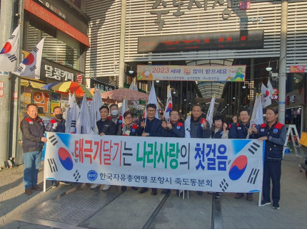 한국자유총연맹 포항시지회는 해마다 3.1절, 현충일, 제헌절, 광복절 등 국경일을 전후해 나라사랑 태극기 달기 캠페인을 적극적으로 펼쳐 오고 있다. 올해는 3.1운동 104주년을 맞이해 지회 산하 대다수의 분회가 참여해 태극기 홍보 캠페인을 전개해 3.1운동 104주년을 기념하고 나라사랑 함양 및 국민주체성을 확립하기 위해 캠페인을 전개하였다.