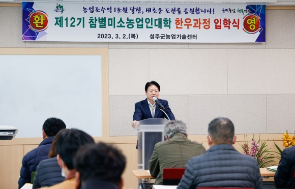 |  | | | ⓒ (주)영남도민일보 | | [영남도민일보] 영남도민일보 기자 = 성주군(군수 이병환)은 3월 2일 농업기술센터 한우과정 교육장에서 교육생 25명이 참석한 가운데 11월 2일까지 진행되는 제12기 참별미소농업인대학을 개강하였다.