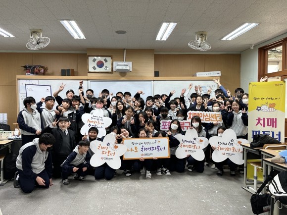 ‘치매 파트너’는 치매에 대한 이해를 바탕으로 일상생활에서 치매 환자와 가족을 배려하는 따뜻한 동반자를 말한다. 이번 교육은 치매에 대한 인식 개선과 치매 극복 선도학교 지정 유지를 위해 진행됐으며, 주요 내용은 △치매안심센터 소개 △치매 파트너 역할 △치매 인식 개선 영상시청 등으로 진행됐으며, 참여 학생들이 치매 환자와 가족을 이해하고 응원하는 동반자로서 역할을 다짐하는 시간이 됐다.