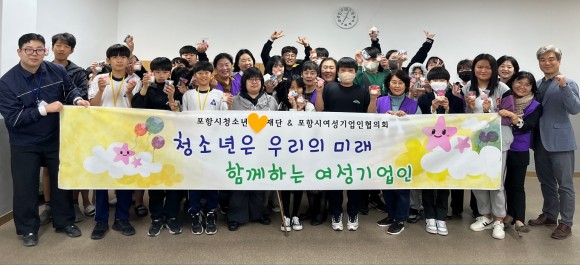 이날 특별 프로그램은 포항시여성기업인협의회(회장 신귀숙)에서 강사 및 간식, 참여 청소년들을 위한 소정의 선물, 프로그램 재료 등 일체를 지원하는 봉사활동 및 재능기부로 지역사회와 연계를 통해 진행됐다.