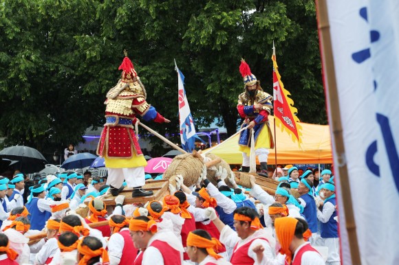 350명의 대규모 인원이 참여한 차전놀이 정기공연은 이번 축제의 하이라이트를 장식했다.