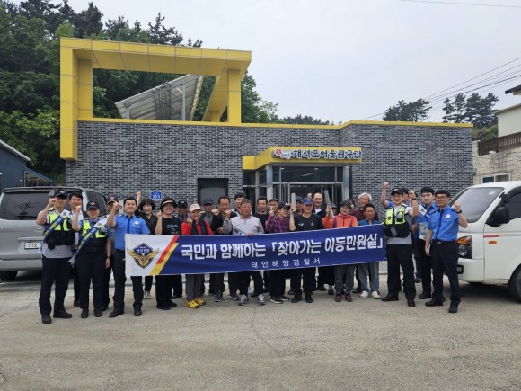 |  | | ↑↑ ▲ 태안해양경찰서는 24일 태안군 근흥면 채석포항 지역주민 대상 ‘찾아가는 이동 민원봉사실’을 운영했다.