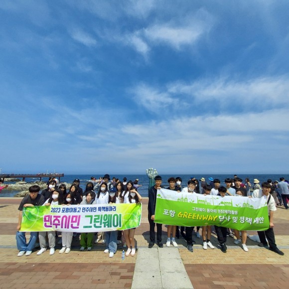 앞서 동아리 학생들은 지속가능한 발전에 대한 교과 내용을 학습하고, 포항의 해안선과 경관자원을 활용해 추진되는 ‘오션 그린웨이’ 사업과 그 대표사업인 호미반도 국가 해양 정원 조성에 관련된 내용을 사전 탐구했다.