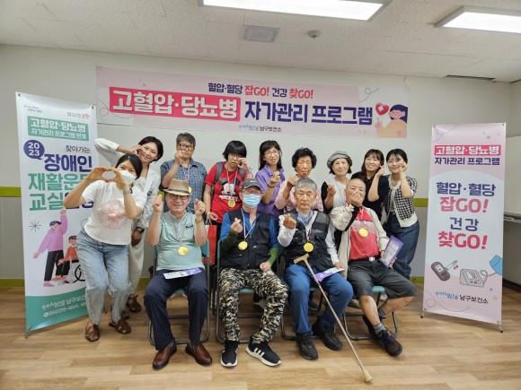 이분남 남구보건소 건강관리과장은 “「혈압·혈당 잡GO, 건강 찾GO」프로그램을 통해 참여자들이 고혈압·당뇨병 예방관리법을 즐겁게 습득하고 일상생활 속에서도 꾸준히 건강한 생활습관을 이어가 건강한 삶을 영위하는데 도움이 되길 바란다.”라고 밝혔다.
