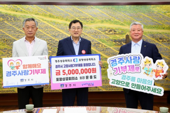 문충도 포항상공회의소 회장은 “이번 상호기부를 통해 포항과 경주의 지역 경제 활성화와 함께 성공적인 기부 문화 정착의 계기가 되기를 바란다”고 말했다.