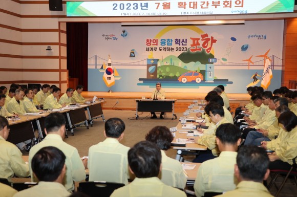 |  | | | ↑↑ 이강덕 포항시장은 18일 시청 대회의실에서 확대간부회의를 주재하며 호우 대비 산사태 대응 전략 등을 논의했다. | | ⓒ (주)영남도민일보 | | [영남도민일보] 홍 인환 기자 = 이강덕 포항시장은 18일 개최된 확대간부회의를 주재하며 “시민 안전을 최우선에 두고 철저한 사전 준비와 유사시 신속한 대응으로 극한 호우에 대비해 피해 최소화에 만전을 기해 줄 것”을 주문했다.