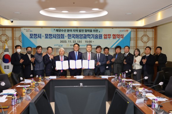 |  | | | ⓒ (주)영남도민일보 | | [영남도민일보] 홍 인환 기자 = 포항시는 포항시의회와 함께 22일 해양수산부 산하 해양 과학기술 전문 연구기관인 한국해양과학기술원(KIOST)과 해양수산 분야 지역 발전을 위한 업무협약을 체결했다.