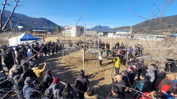 |  | | | ⓒ (주)영남도민일보 | | [영남도민일보] 김 재근기자 = 문경시농업기술센터(소장 김미자)는 1월 8~11일까지(4일간) 기술센터에서 일본사과재배 전문가 구로다 야스마사씨와 오카다 오사무씨를 초청 관내 사과재배 농업인을 대상으로 동계 정지전정 현장교육과 이론교육을 실시하였다.