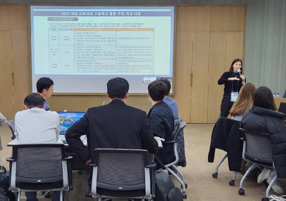 이번 연수는 직업계고 학점제와 관련한 경기도 삼일고등학교의 노숙희 교사를 강사로 초청해 2024년 학교 현장에서 가장 필요로 하는 내용을 중점적으로 제공했다. 세부 주제는 2015 및 2022 개정 교육과정의 편성 실제, 계열별 및 학과 구성 분석을 통한 상담 전략 마련, 교수·학습·평가·기록의 실제, 수강 신청 시스템 활용 등이다.