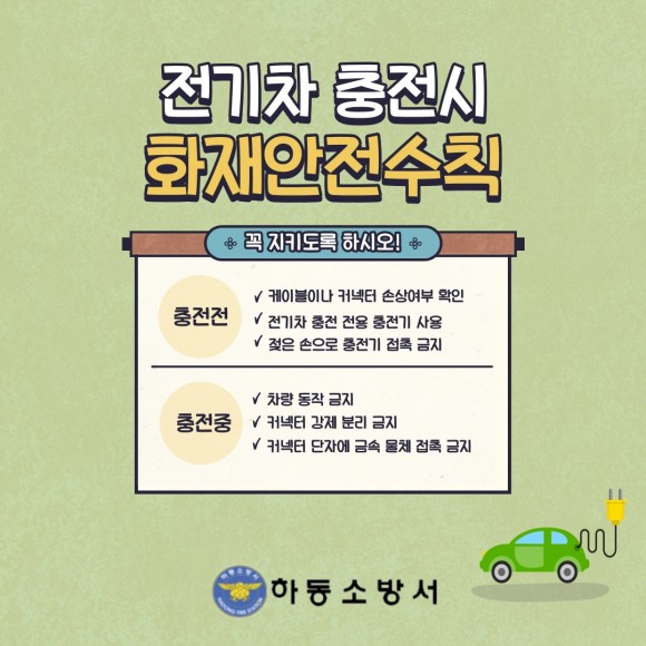하동소방서, 충전 전 케이블이나 커넥터 손상 여부 확인 등 안전수칙 지켜야