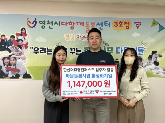이날 전달된 후원금은 한신더휴 아파트의 2023년 발생한 잡수입으로 입주자 대표회의에서 경북사회복지공동모금회에 영천시다함께돌봄센터3호점 지정 기탁을 결정한 뒤 후원하게 되었다.