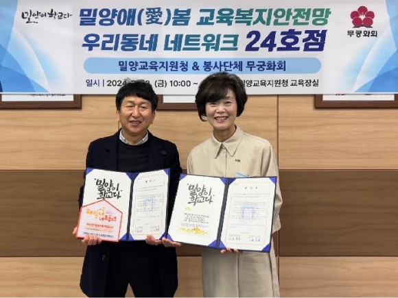 |  | | | ⓒ (주)영남도민일보 | | [영남도민일보] 영남도민일보 기자 = 밀양교육지원청(교육장 손경순)은 23일 교육취약계층 학생의 주거환경을 개선하기 위해 봉사단체 무궁화회와 업무협약을 체결을 했다.
