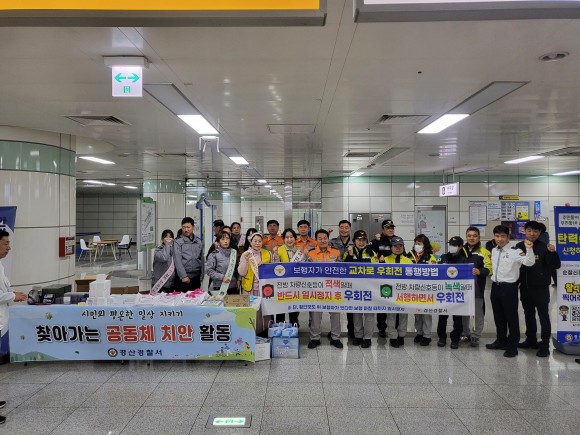 찾아가는 공동체치안 활동’은 치안현장을 찾아가 치안사각지대를 발굴하고, 유관기관과 협업하여 시민을 대상으로 범죄예방 홍보활동을 하는 등 종합적인 치안 서비스를 제공하는 것으로, 경산경찰서에서 매월 실시 중에 있다.