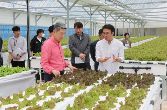이날 방문한 상추 분무수경재배 농가는 연중 고품질 상추 재배를 목표로 혁신 기술을 도입, 연중 안정생산 기반 구축과 농가소득 증대를 도모하고 있다.