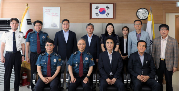 |  | | | ⓒ (주)영남도민일보 | | [영남도민일보] 영남도민일보 기자 = 울산자치경찰위원회(위원장 김재홍, 이하 위원회)가 6월 13일 오후 2시 남구 달동 한울빌딩 8층 회의실에서 오부명 울산경찰청장을 비롯한 시 경찰청 간부들을 초청해 간담회를 가졌다.
