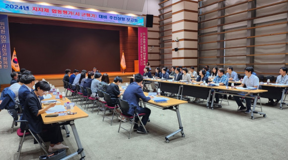|  | | | ↑↑ 포항시는 26일 시청 대회의실에서 장상길 부시장 주재로 ‘2024년도 정부합동평가(시·군평가) 대비 추진상황 보고회’를 개최했다. | | ⓒ (주)영남도민일보 | | [영남도민일보] 홍 인환기자 = 포항시는 26일 시청 대회의실에서 장상길 부시장 주재로 관련 부서장 및 팀장 등 40여 명이 참석한 가운데 ‘2024년도 정부합동평가(시․군평가) 대비 추진상황 보고회’를 개최했다.