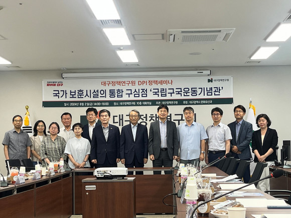|  | | | ⓒ (주)영남도민일보 | | [영남도민일보] 김 경주기자 = 대구정책연구원(원장 박양호)은 제79주년 광복절에 즈음하여 8월 2일(금) 14시에 “국가 보훈시설의 통합 구심점 「국립구국운동기념관」”이라는 주제로 정책세미나를 개최했다.