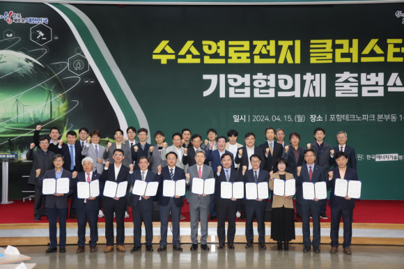 |  | | | ↑↑ 지난 4월 출범한 ‘수소연료전지 클러스터 기업협의체’ | | ⓒ (주)영남도민일보 | | [영남도민일보] 홍 인환기자 = 포항시가 국가첨단전략산업인 이차전지, 바이오 특화단지에 이어 올 하반기에는 ‘국내 최초’ 수소특화단지에 도전한다.