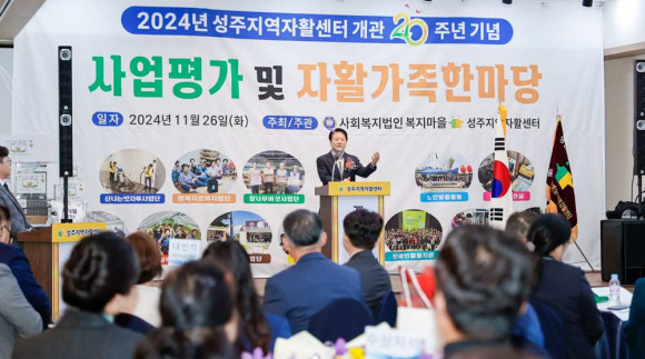 |  | | | ⓒ (주)영남도민일보 | | [영남도민일보] 영남도민일보 기자 = 성주지역자활센터(센터장 권우성)에서는 11월 26일, 성주SJ컨벤션센터에서 이병환 성주군수를 비롯해 자활센터 종사자, 참여자 등 250여명이 참석한 가운데 개관 20주년 기념 사업평가 및 자활가족한마당행사를 개최하였다.