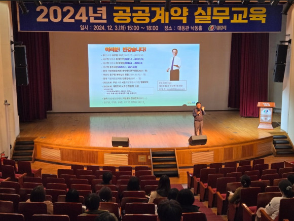 이번 교육은 갈수록 복잡하고 어려워지는 지방계약 업무로 어려움을 겪고 있는 회계 및 감독공무원의 전문성을 강화하고 실무능력을 향상해, 계약업무를 원활하게 추진할 수 있도록 지원하기 위해 마련됐다.