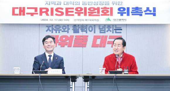 |  | | | ⓒ (주)영남도민일보 | | [영남도민일보] 김 경주 기자 = 대구광역시는 내년 RISE 본격 시행을 앞두고 RISE 의사결정기구인 대구RISE위원회를 구성하고, 12월 17일(화) 오후 2시, 대구시청 산격청사에서 위촉식을 가졌다. ※ RISE(라이즈) : Regional Innovation System & Education(지역혁신중심 대학지원체계) 교육부 대학 재정지원사업의 일부 행·재정 권한을 지자체에 위임·이양하여 지역발전과 연계한 전략적 지원으로 지역과 대학의 동반성장을 추진하는 체계