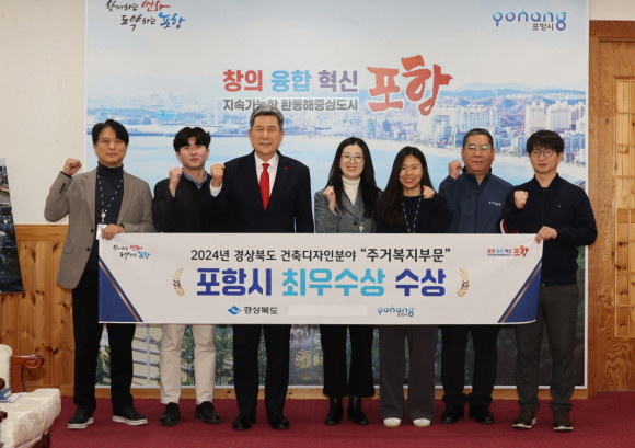 |  | | | ↑↑ 이강덕 포항시장이 ‘경상북도 건축디자인분야’ 유공 표창 시상식에서 주거복지사업 부문 최우수상을 수상한 관련 부서 직원들을 격려하며 19일 기념촬영을 하고 있다. | | ⓒ (주)영남도민일보 | | [영남도민일보] 홍 인환 기자 = 포항시는 ‘경상북도 건축디자인분야’ 유공 표창 시상식에서 주거복지사업의 발전에 적극 기여한 공로를 인정받아 최우수상을 수상했다고 19일 밝혔다.