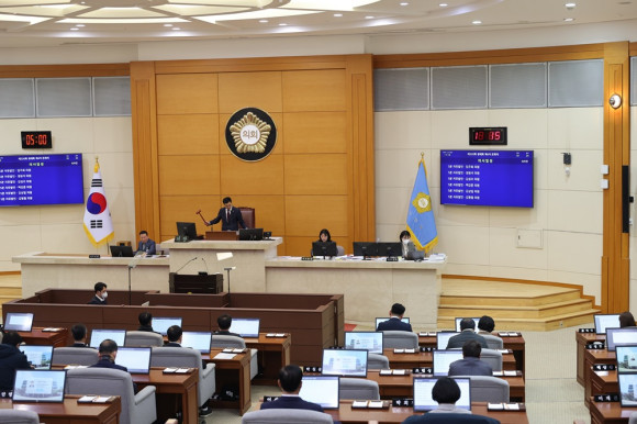 김성조 의원은 소통·화합을 통한 원활한 의회 운영과 교섭단체 구성 및 운영에 관한 조례 제정을 촉구하며 의회 기능 정상화를 주문했다.