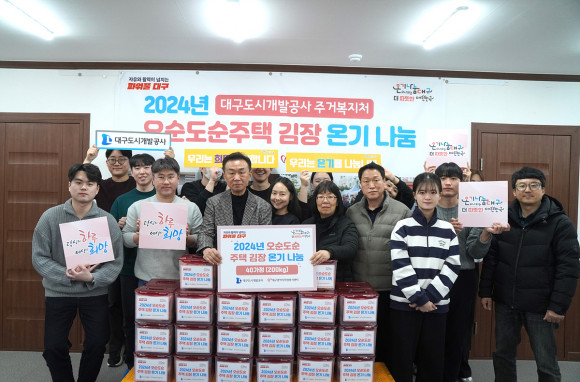선정된 세대에는 연말을 맞아 ‘온기나눔’ 캠페인의 일환으로, 대구도시개발공사 20여 명의 주거복지 담당 직원들이 참여한 가운데 300kg의 김장 김치를 직접 담가 포장하여 ‘2024년도 오순도순주택’으로 전달했다. 이를 통해 따뜻한 마음과 온기를 전달하고, 공동체 정신을 강화하는 뜻깊은 시간을 가졌다.