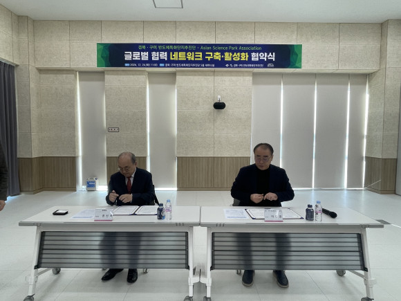 |  | | | ⓒ (주)영남도민일보 | | [영남도민일보] 김 옥순 기자 = 경북·구미 반도체특화단지추진단(단장 이현권)과 아시아사이언스파크협회(사무총장 권선국)는 24일 스마트커넥트센터에서 글로벌 협력 네크워크 구축 활성화를 위한 업무 협약(MOU)을 체결하였다.