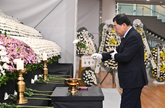 市, 도청에 마련된 분향소 찾아 제주항공 희생자 헌화와 애도