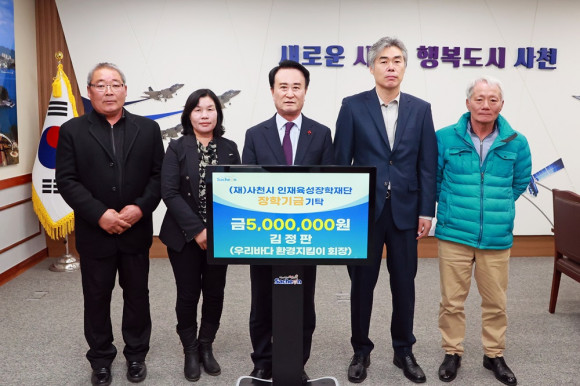 우리바다 환경지킴이, 사천시에 장학금 500만 원 기탁