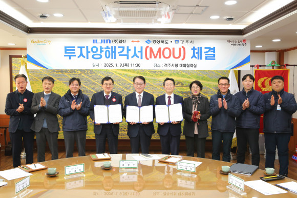 경주시는 9일 주낙영 시장, 이경수 ㈜일진 대표이사, 이남억 경북도 공항투자본부장이 참석한 가운데, 청사 내 대외협력실에서 투자유치 협약(MOU)을 체결하고 투자 계획과 협력 방안을 논의했다고 이날 밝혔다.