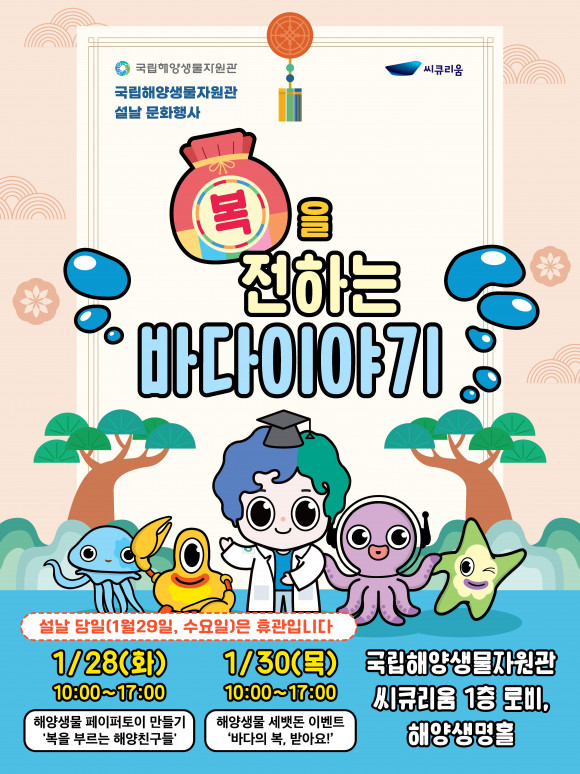 설날을 맞아 진행되는 행사는 해양생물을 테마로 전통 명절과 연계한 창의적 체험프로그램으로 구성된다.