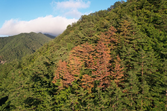 작년 여름, 7월과 8월의 극심한 폭염은 울진과 삼척 등의 산림유전자원보호구역에 집단적인 금강소나무 고사를 초래했다.