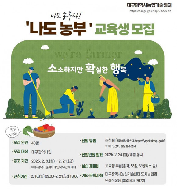 대구농업기술센터 2025년‘나도 농부 교육’교육생 모집